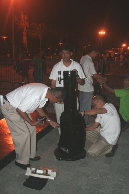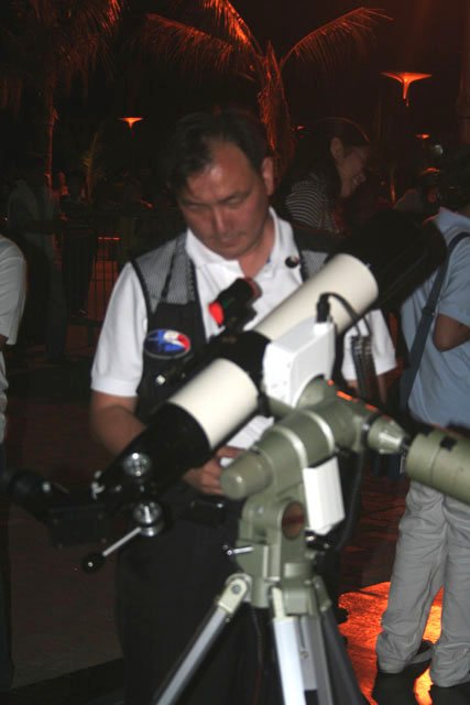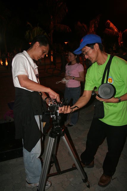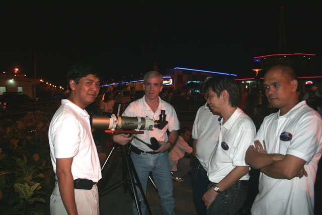 Roland Moya assists Jon Alcartado setup his 80mm refractor. |